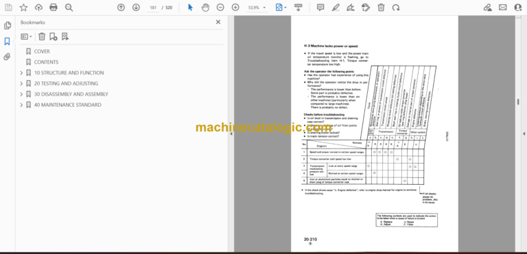 COVER CONTENTS 10 STRUCTURE AND FUNCTION 20 TESTING AND ADJUSTING 30 DISASSEMBLY AND ASSEMBLY 40 MAINTENANCE STANDARD