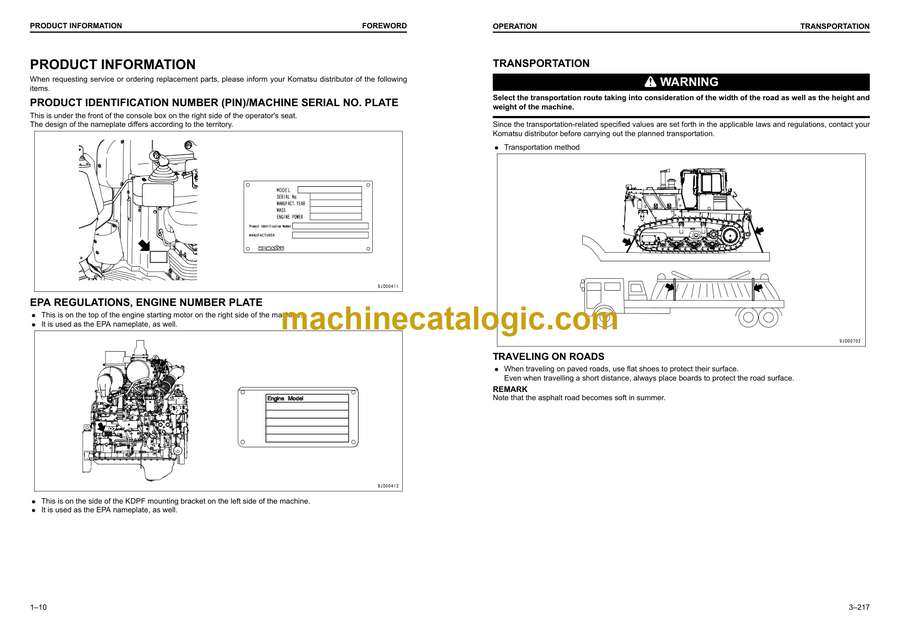• PRODUCT IDENTIFICATION NUMBER (PIN)/MACHINE SERIAL NO. PLATE