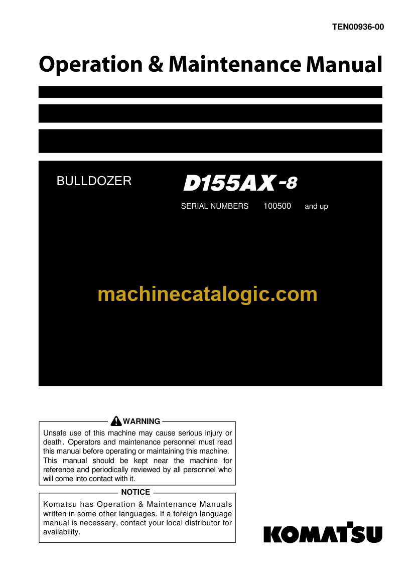 Komatsu D155AX-8 Bulldozer Operation and Maintenance Manual (TEN00936-00)