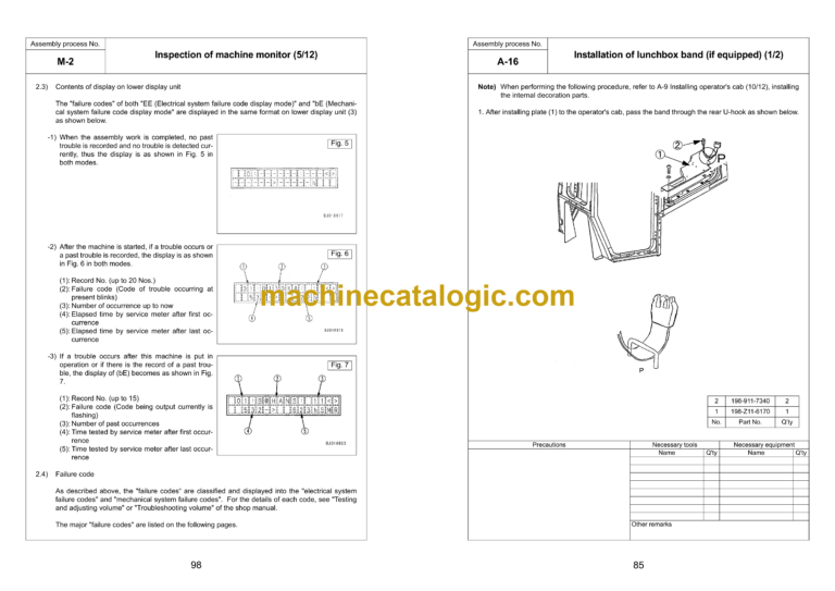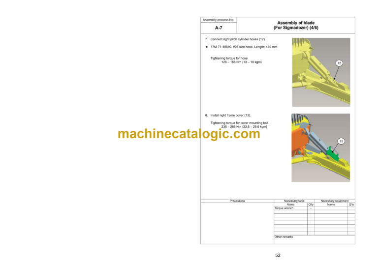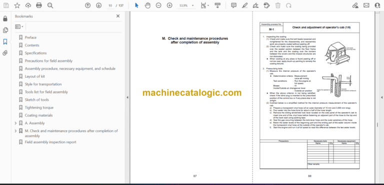 Machine check sheet for field assembly