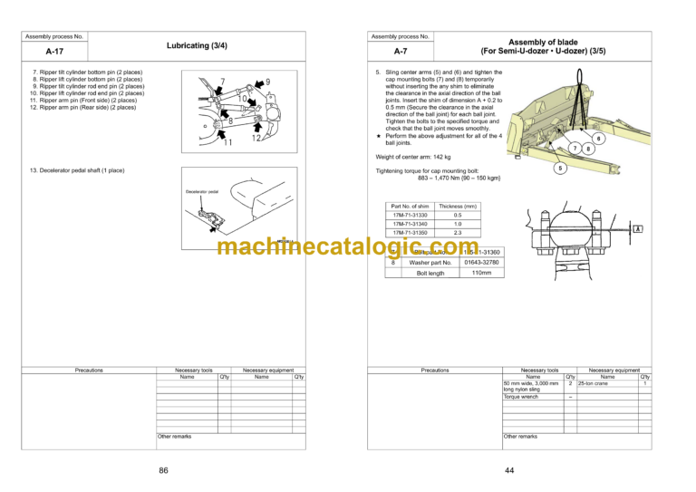 Komatsu D275A-6 Bulldozer Field Assembly Manual (GEN00254-02)