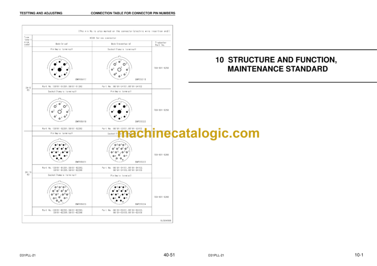 COVER CONTENTS 01 GENERAL 10 STRUCTURE AND FUNCTION 20 TESTING AND ADJUSTING 30 DISASSEMBLY AND ASSEMBLY 40 MAINTENANCE STANDARD 90 OTHERS
