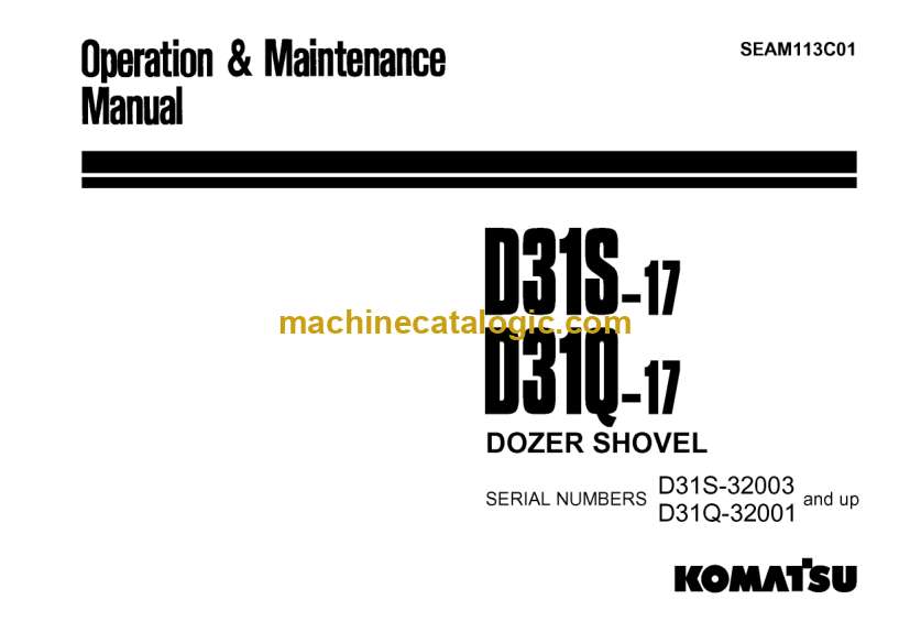Komatsu D31S-17, D31Q-17 Bulldozer Operation and Maintenance Manual (SEAM113C01)