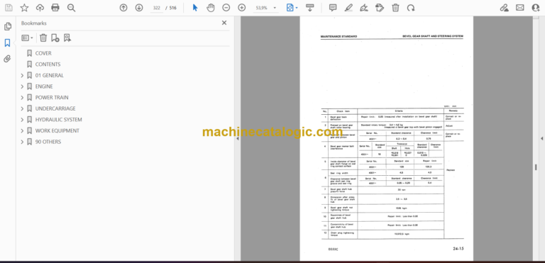 CONTENTS 01 GENERAL ENGINE POWER TRAIN UNDERCARRIAGE HYDRAULIC SYSTEM WORK EQUIPMENT 90 OTHERS