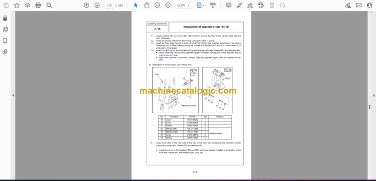 A-16 Installation of operator’s cab ……………………………………………………………………………………………. 104
