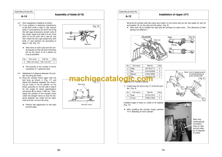 A-12 Installation of ripper …………………………………………………………………………………………………………. 71