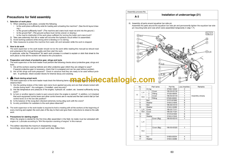 Komatsu D375A-8 Bulldozer Field Assembly Instruction (GEN00161-02)