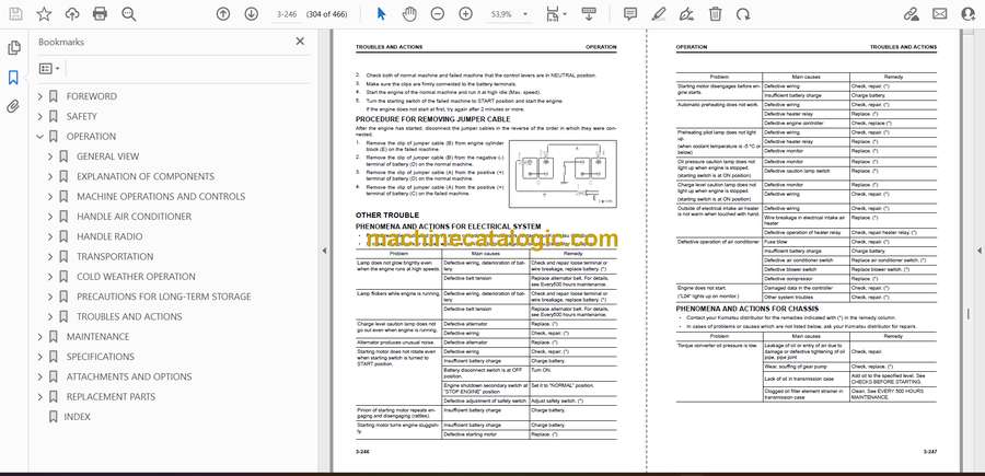 On a D375A-8 working in hard rock, overburden, or heavy push in a mine or quarry, this Operation and Maintenance Manual is what I keep handy to keep the dozer reliable day after day. It walks you through how to run the machine correctly and how to stay on top of routine checks so you don’t find problems the hard way. If, for example, the operator reports sluggish blade response and a hot hydraulic smell at the end of shift, I use this manual to verify the proper inspection steps, trace likely causes, and get the machine back in the dirt with minimal downtime.
