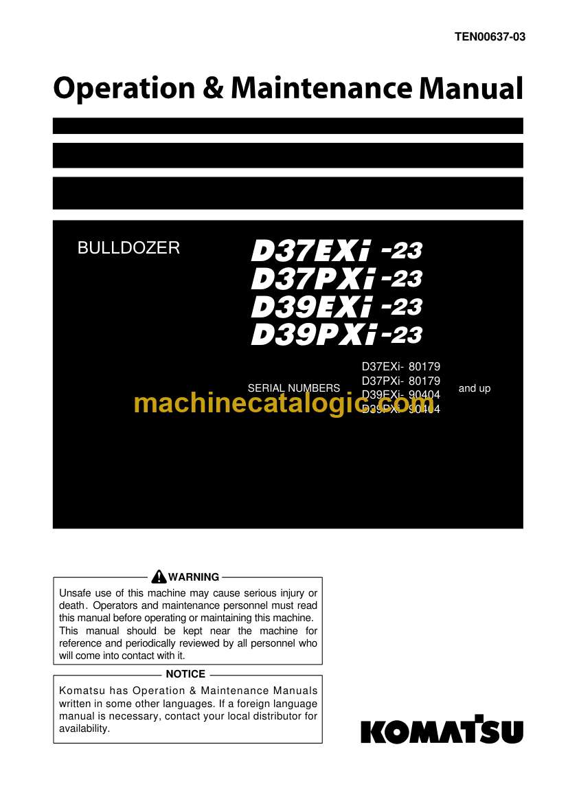 Model: D37EXi-23, D37PXi-23, D39EXi-23, D39PXi-23 Bulldozer