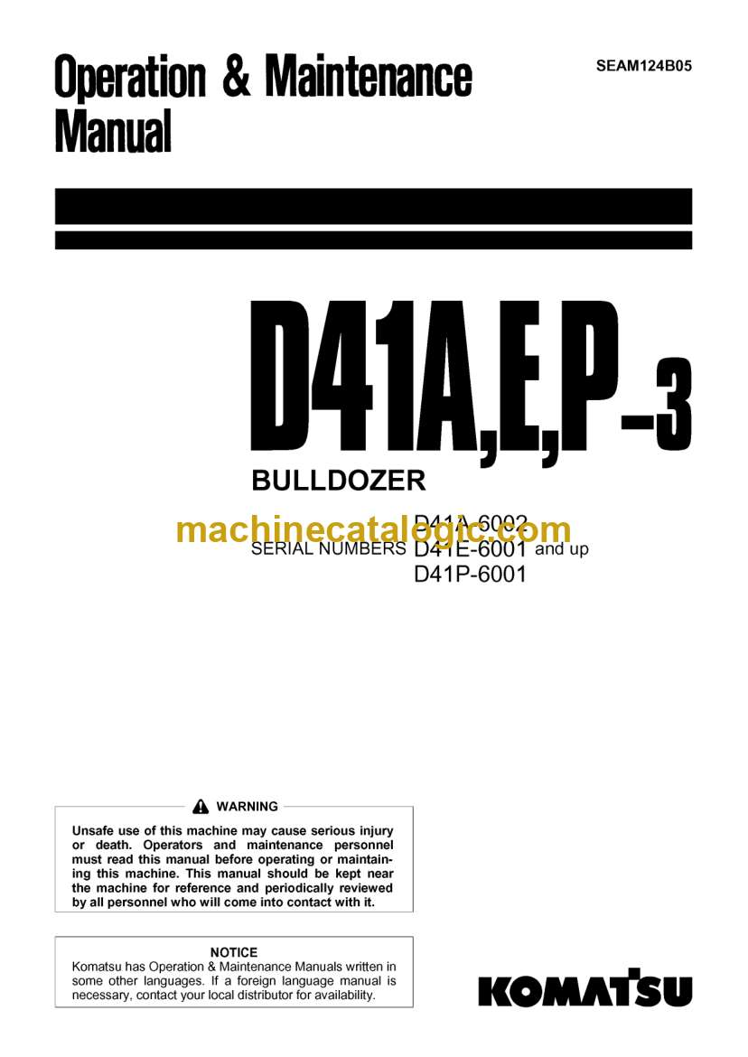 Komatsu D41A-3, D41E-3, D41P-3 Bulldozer Operation and Maintenance Manual (SEAM124B05)