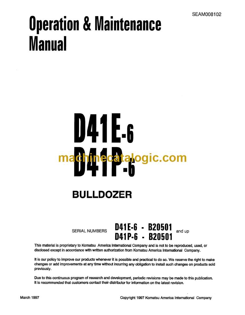 Model: D41E-6, D41P-6 Bulldozer
