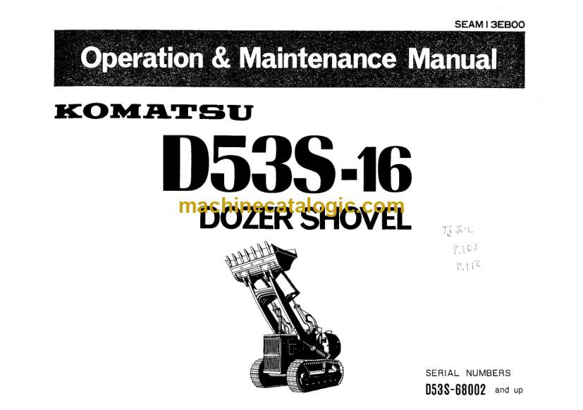 Komatsu D53S-16 Dozer Shovel Operation and Maintenance Manual (SEAM13EB00)