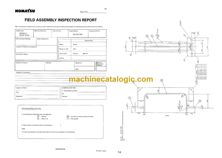 Komatsu D575A-3 Super Dozer Field Assembly Manual (SEAWD02700)