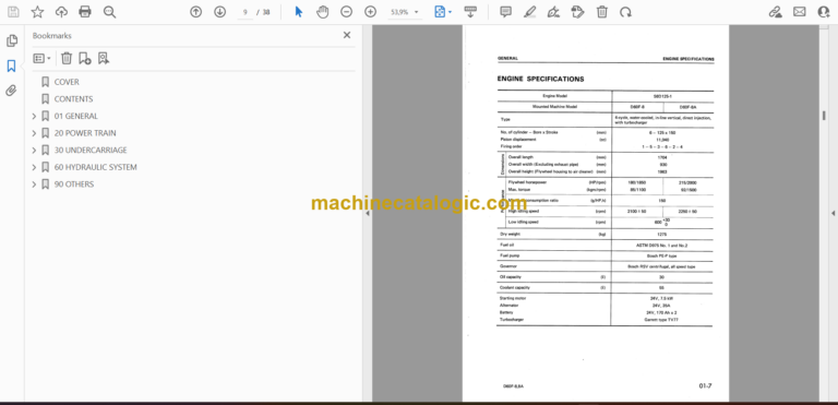 COVER CONTENTS 01 GENERAL 20 POWER TRAIN 30 UNDERCARRIAGE 60 HYDRAULIC SYSTEM 90 OTHERS