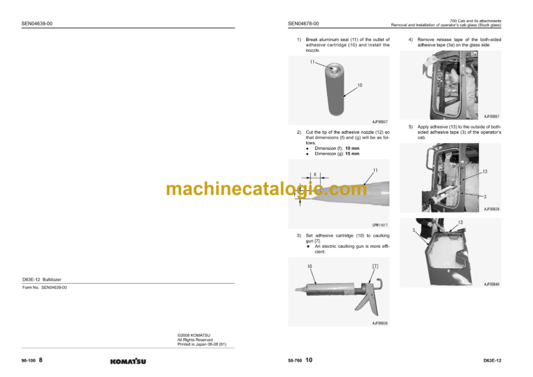Komatsu D63E-12 Bulldozer Shop Manual (SEN04151-00)