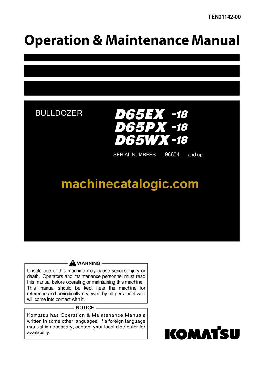 Model: D65EX-18, D65PX-18, D65WX-18 Bulldozer