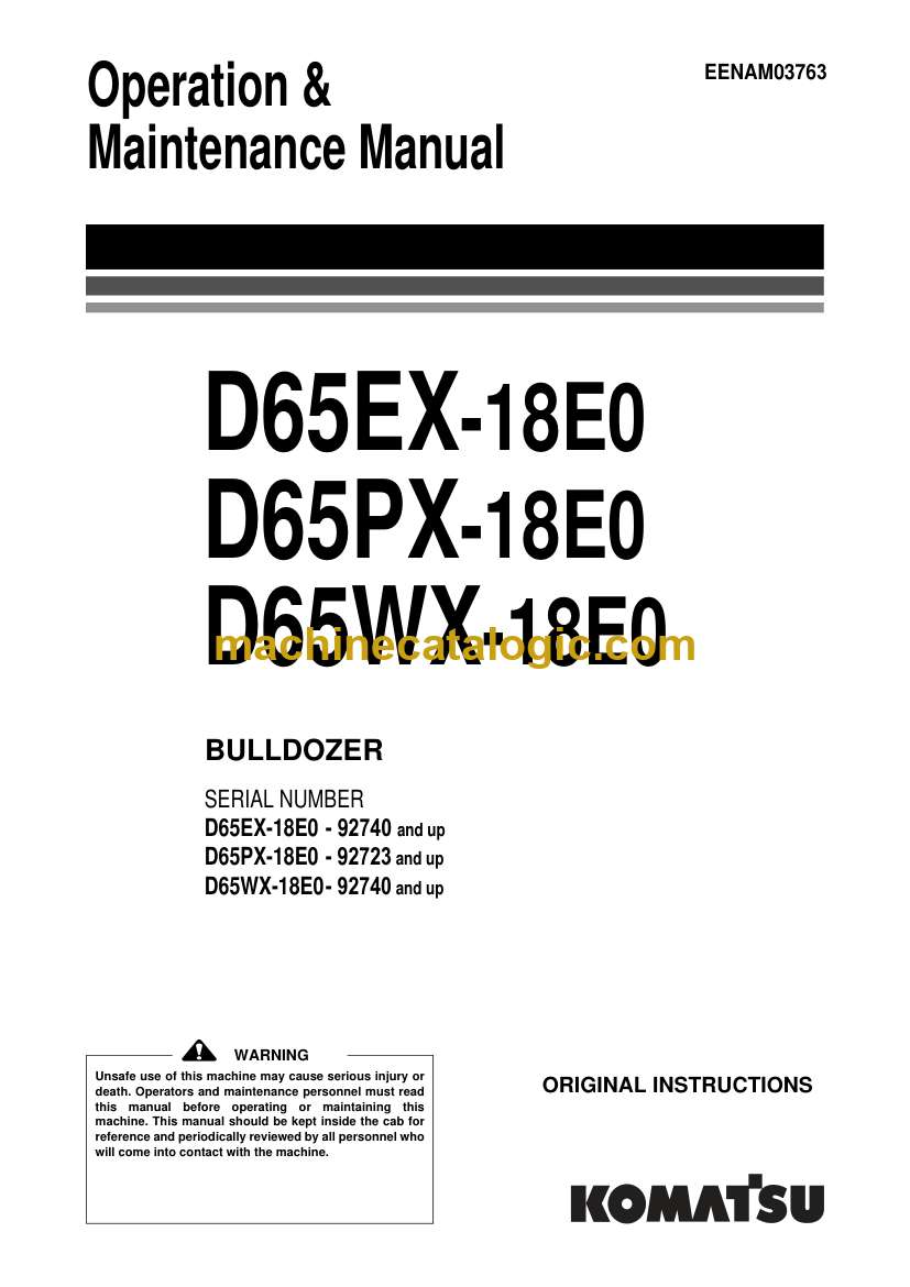 Model: D65EX,18E0, D65PX-18E0, D65WX-18E0 Bulldozer