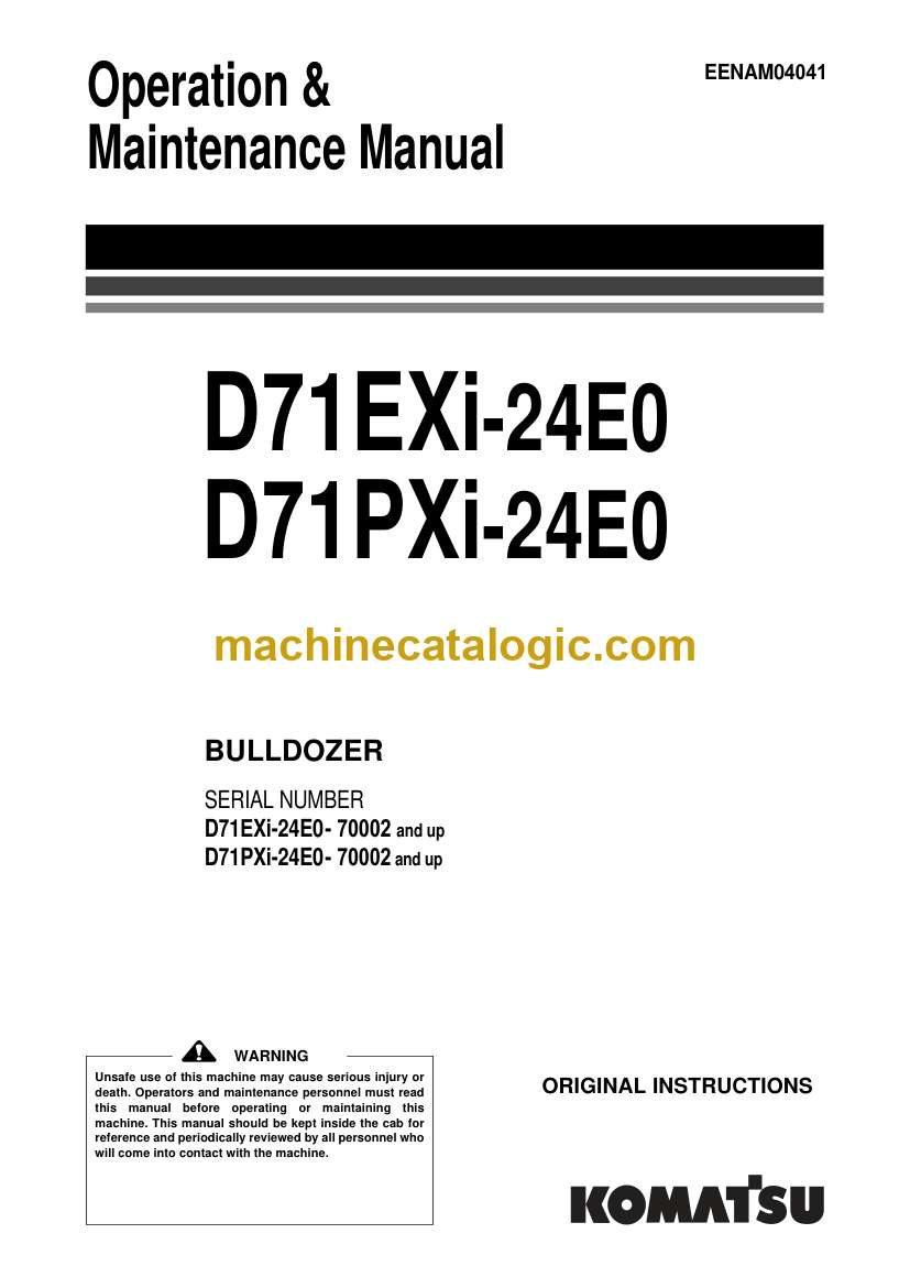 Komatsu D71EXi-24E0, D71PCi-24E0 Bulldozer Operation and Maintenance Manual (EENAM04041)