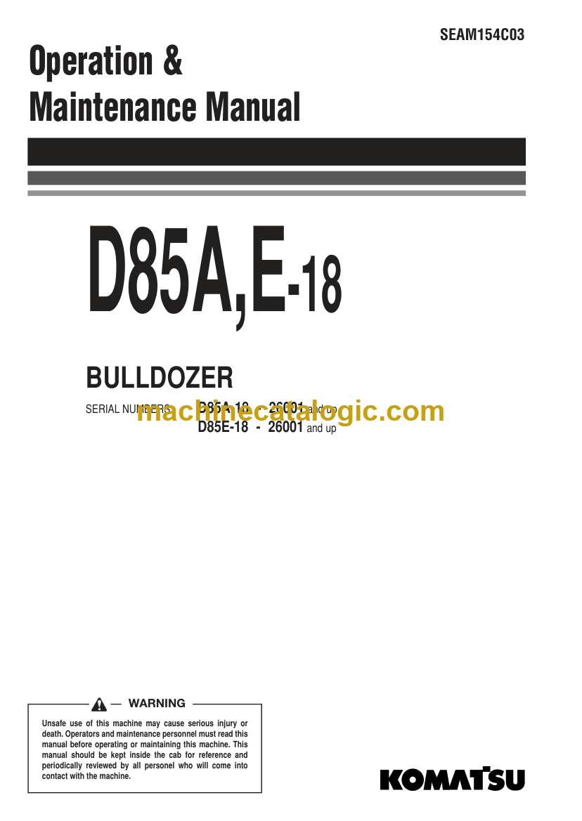 Komatsu D85A-18, D85E-18 Bulldozer Operation and Maintenance Manual (SEAM154C03)