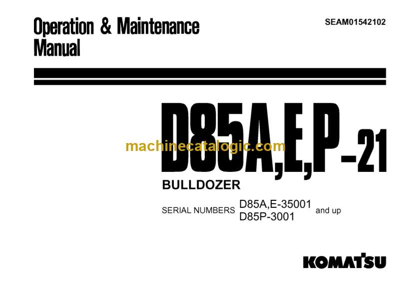 Komatsu D85A-21, D85E-21, D85P-21 Bulldozer Operation and Maintenance Manual (SEAM01542102)