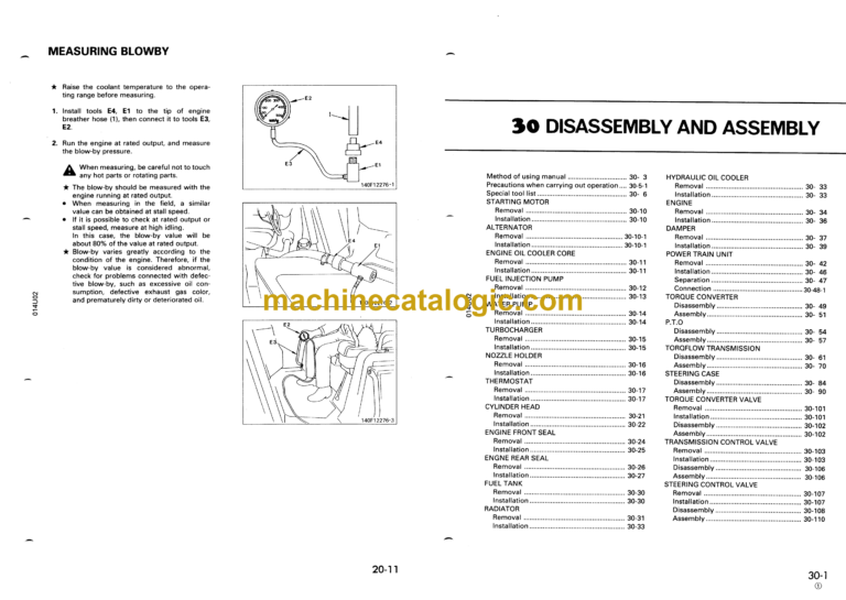 COVER CONTENTS 01 GENERAL 10 STRUCTURE AND FUNCTION 20 TESTING AND ADJUSTING 30 DISASSEMBLY AND ASSEMBLY 40 MAINTENANCE STANDARD 90 OTHERS