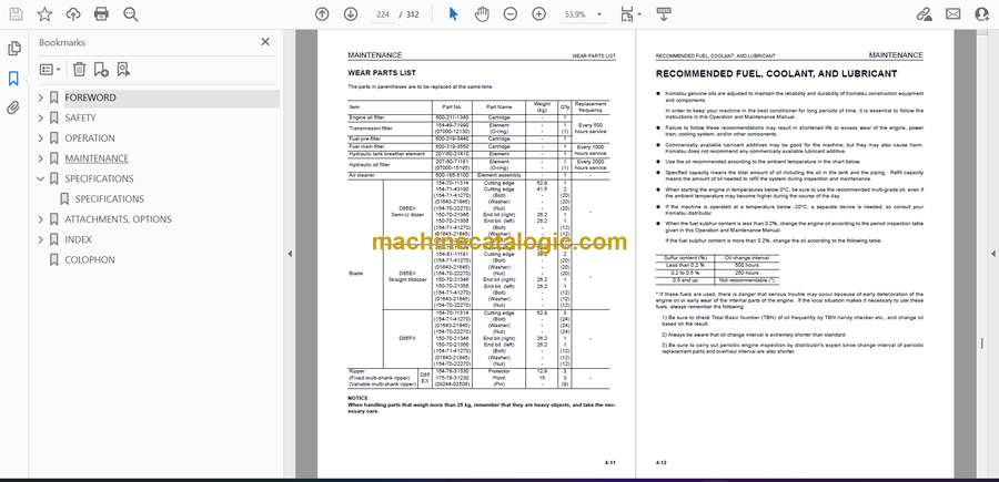 Model: D85EX-15E0, D85PX-15E0 Bulldozer