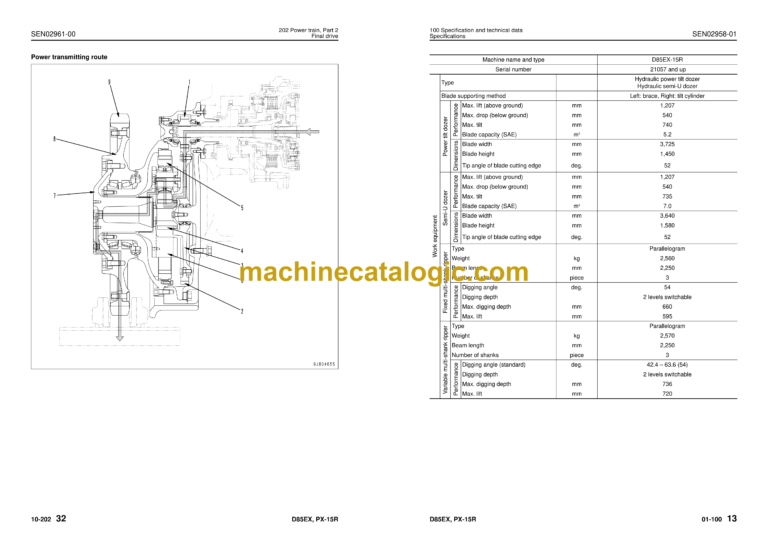 Komatsu D85EX-15R, D85PX-15R Bulldozer Index: