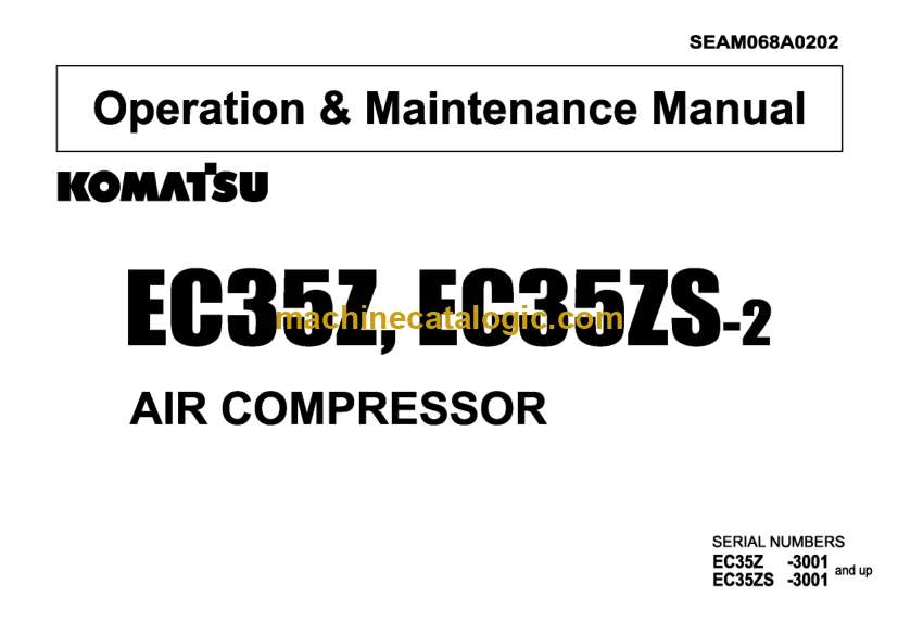 Komatsu EC35Z-2, EC35ZS-2 Air Compressor Operation and Maintenance Manual (SEAM068A0202)