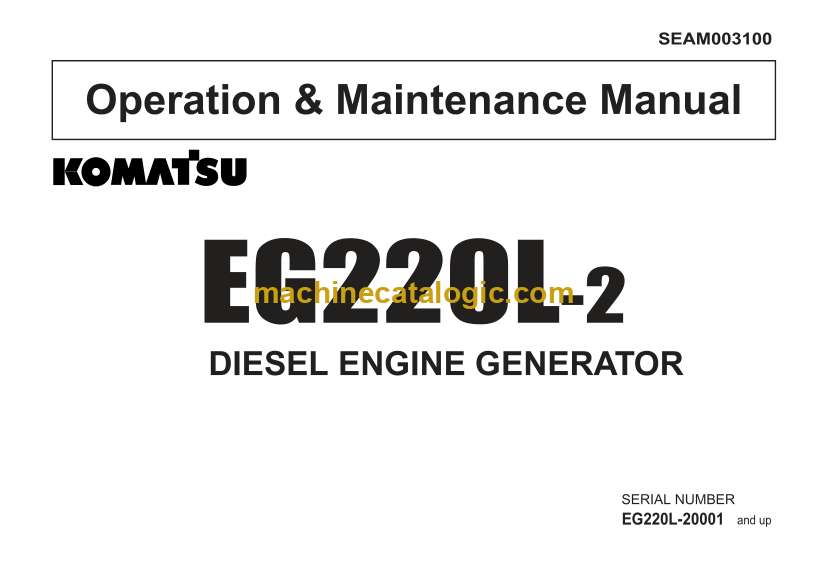 Komatsu EG220L-2 Diesel Engine Generator Operation and Maintenance Manual (SEAM003100)
