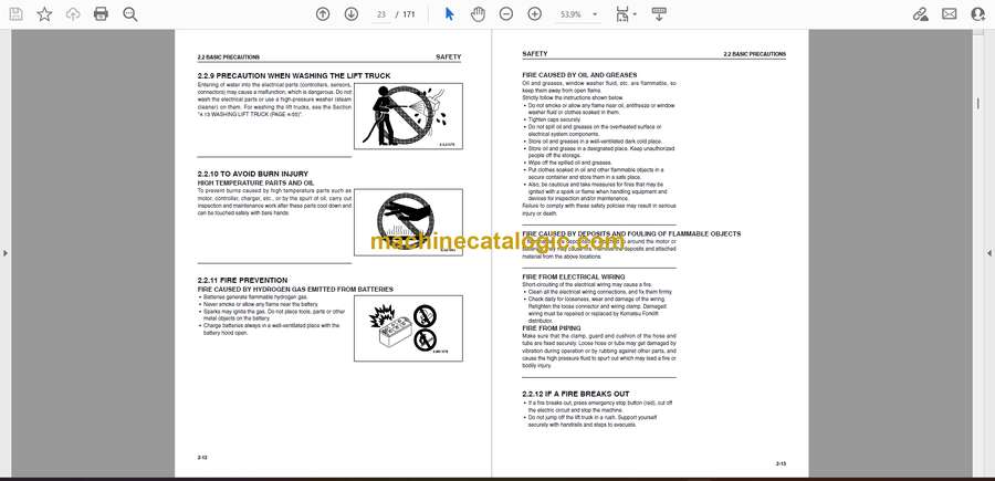 2.2.9 PRECAUTION WHEN WASHING THE LIFT TRUCK —————————————————- 2-12