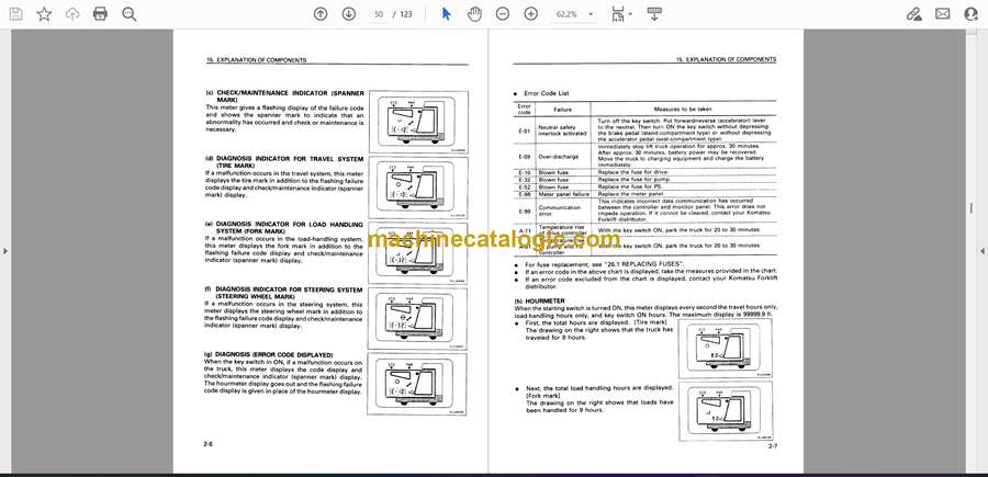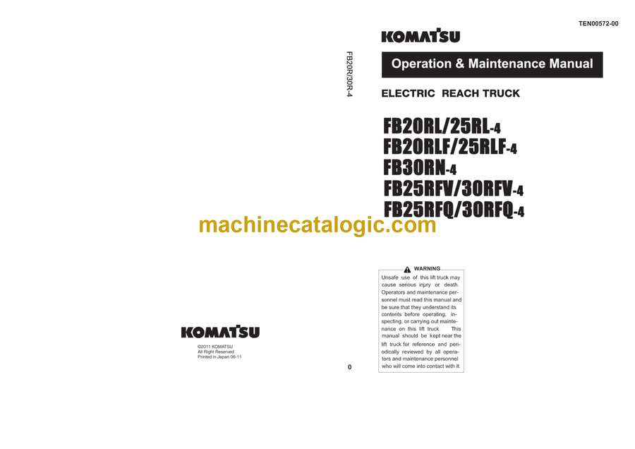Komatsu FB20RL, FB25RL-4, FB20RLF, FB25RLF-4, FB30RN-4, FB25RFV, FB30RFV-4, FB25RFQ, FB30RFQ-4 Electric Reach Truck Operation and Maintenance Manual (TEN00572-00)