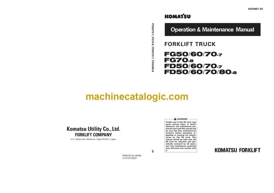 Model: FG50-7, FG60-7, FG70-7, FG70-8, FD50-7, FD60-7, FD70-7, FD50-8, FD60-8, FD80-8