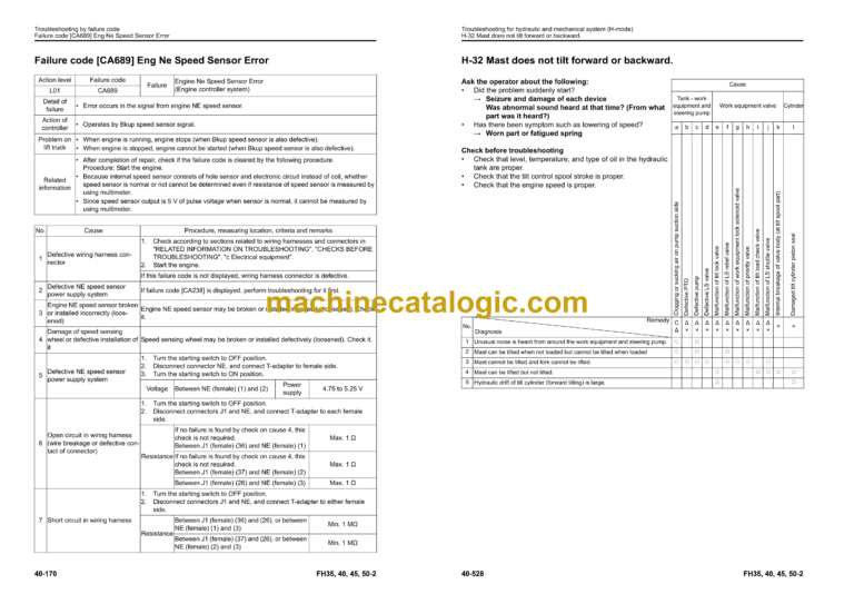 Troubleshooting for Hydraulic and Mechanical Systems (H Mode)