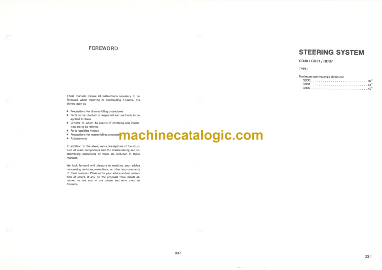 Komatsu GD30, GD31, GD37 Motor Grader Index: