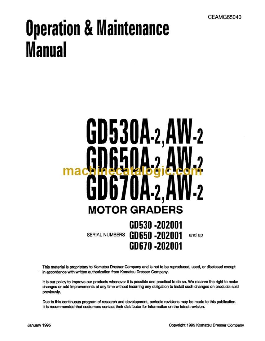 Model: GD530A-2, GD530AW-2, GD650A-2, GD650AW-2, GD670A-2, GD670AW-2 Motor Grader