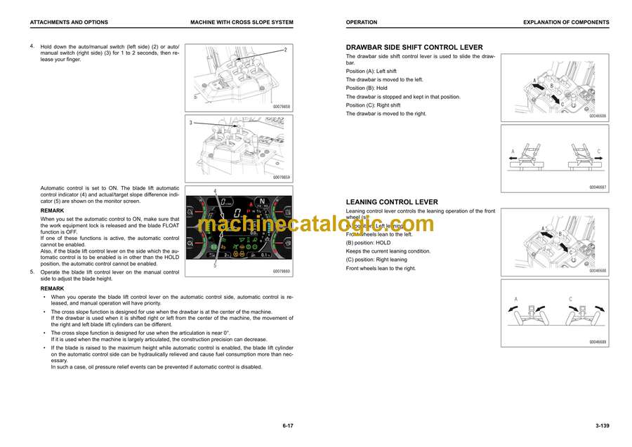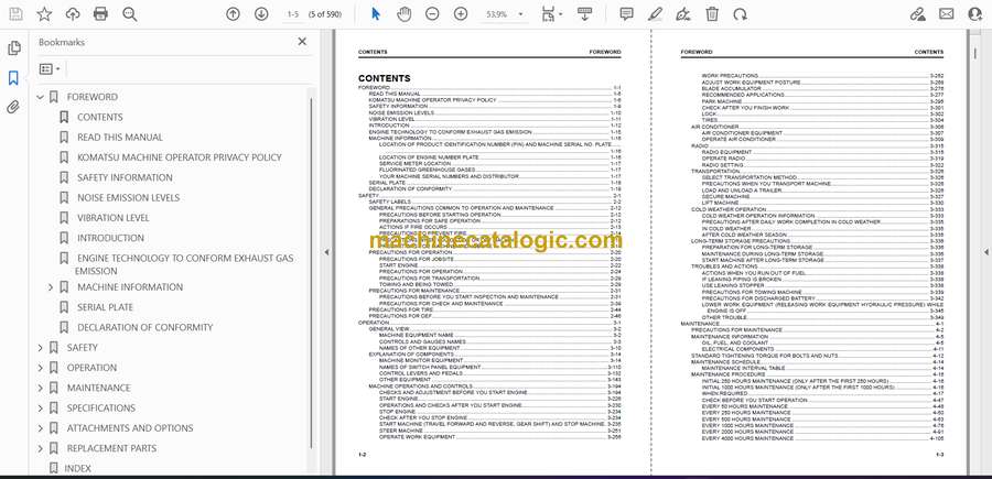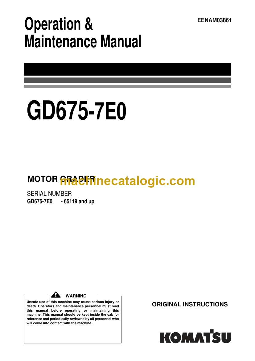 A GD675-7E0 grader usually lives on haul roads, subdivision cuts, and final trim on highway jobs—dust, vibration, and long pushes under load. This Operation and Maintenance Manual is what I keep handy to set a sane service rhythm and keep the machine predictable day after day. If, for example, the blade starts chattering or steering feels loose, I use this book to walk through the basic checks in the right order before calling in a laptop or tearing into hydraulics.