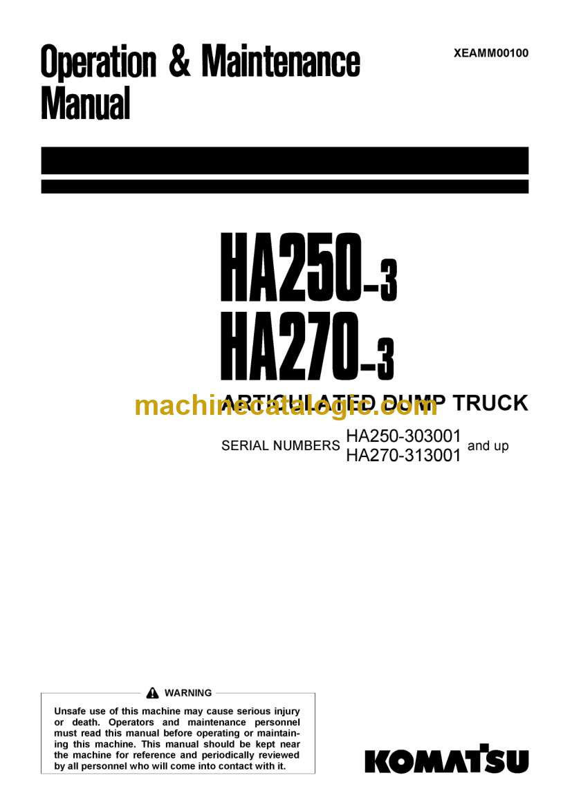 Komatsu HA250-3, HA270-3 Dump Truck Operation and Maintenance Manual (XEAMM00100)