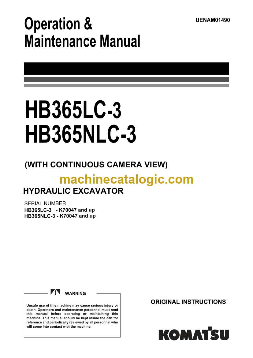 Model: HB365LC-3, HB365NLC-3 Hydraulic Excavator