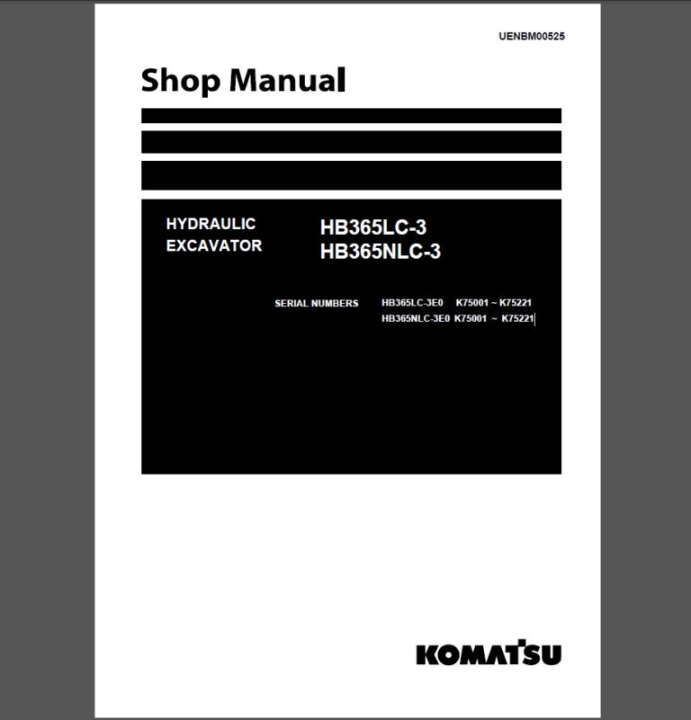 Komatsu HB365LC-3, HB365NLC-3 Hydraulic Excavator Shop Manual (UENBM00525)