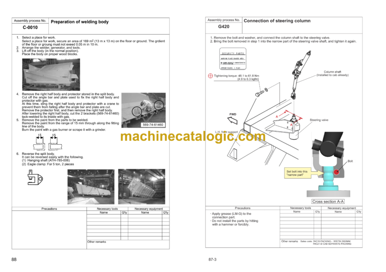 0540 Installation of dump body stopper