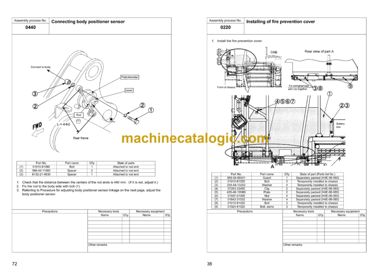Machine check sheet for field assembly