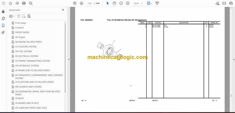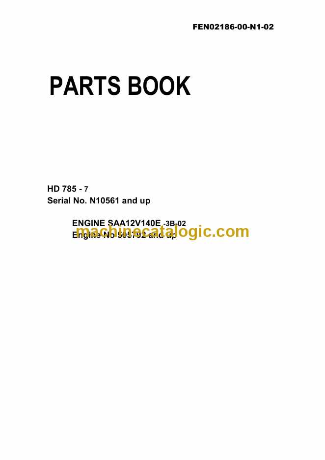 Komatsu HD785-7 Dump Truck Parts Manual (FEN02186-00-N1-02) (Serial No. N10561 and up)