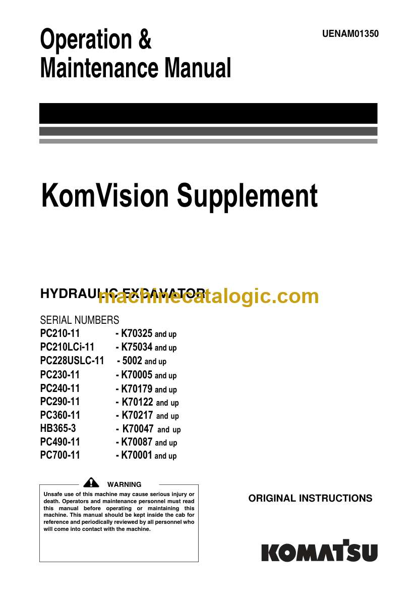 Komatsu KomVision Supplement Hydraulic Excavator Operation and Maintenance Manual (UENAM01350)