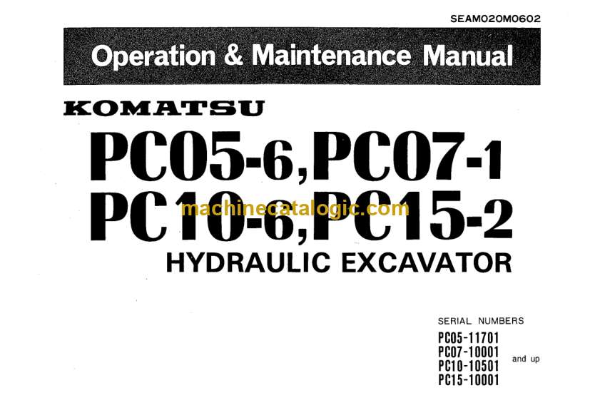 Komatsu PC05-6, PC07-1, PC10-6, PC15-2 Hydraulic Excavator Operation and Maintenance Manual (SEAM020M0602)