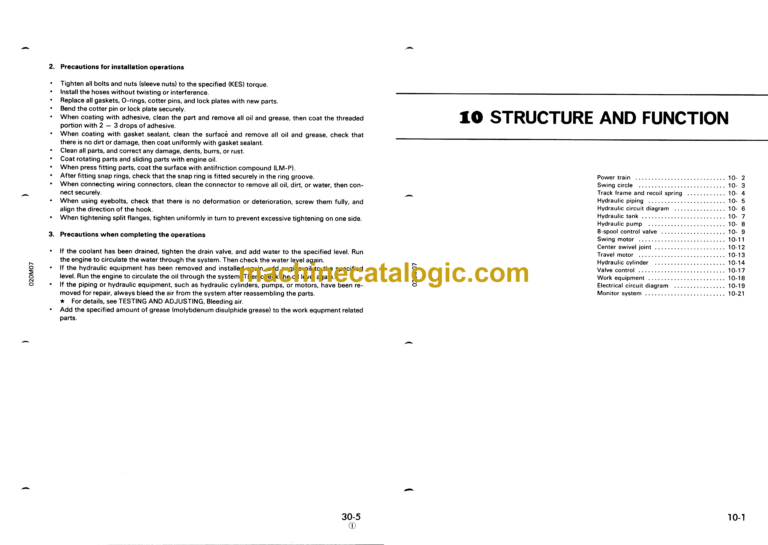 CONTENTS 10 STRUCTURE AND FUNCTION 20 TESTING AND ADJUSTING 30 DISASSEMBLY AND ASSEMBLY 40 MAINTENANCE STANDARD