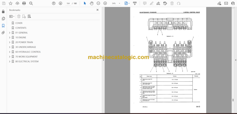 01 GENERAL 10 ENGINE 20 POWER TRAIN 30 UNDERCARRIAGE 60 HYDRAULIC CONTROL 70 WORK EQUIPMENT 80 ELECTRICAL SYSTEM