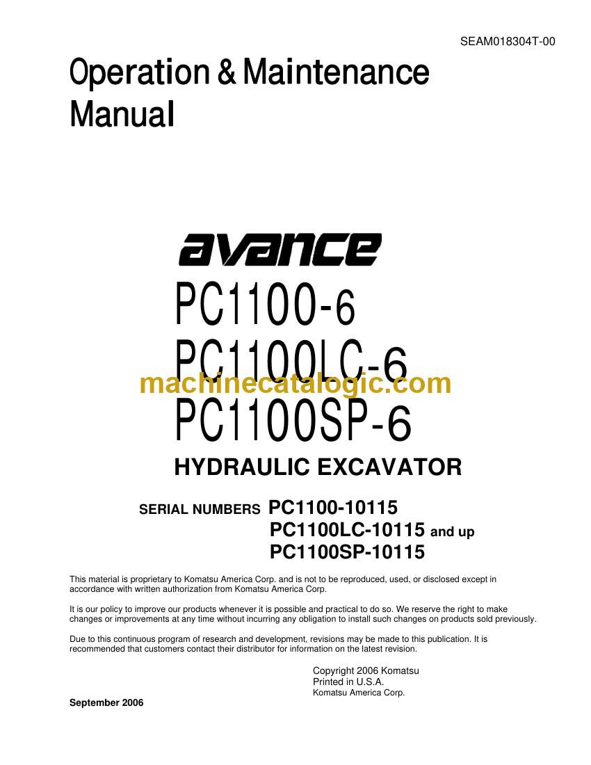 Model: PC1100-6, PC1100LC-6, PC110SP-6 Hydraulic Excavator