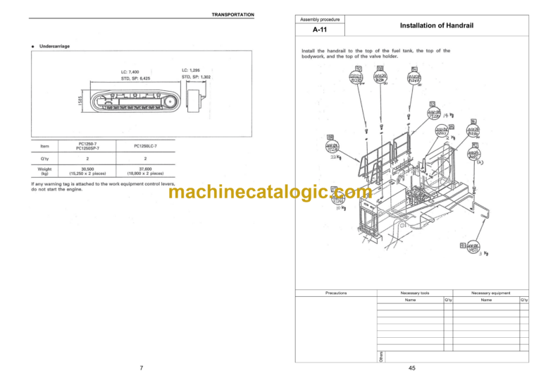 Komatsu PC1250-7 PC1250LC-7 PC1250SP-7 Hydraulic Excavator Index: