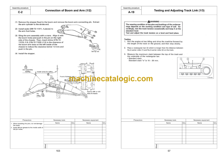 C. PROCEDURE FOR ASSEMBLING WORK EQUIPMENT OF LOADING SHOVEL