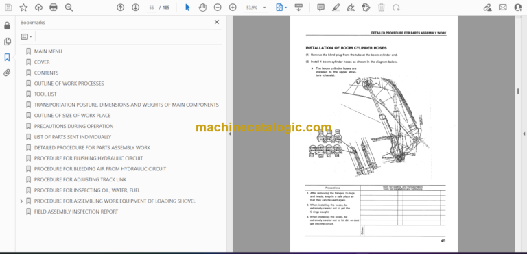 PROCEDURE FOR ASSEMBLING WORK EQUIPMENT OF LOADING SHOVEL